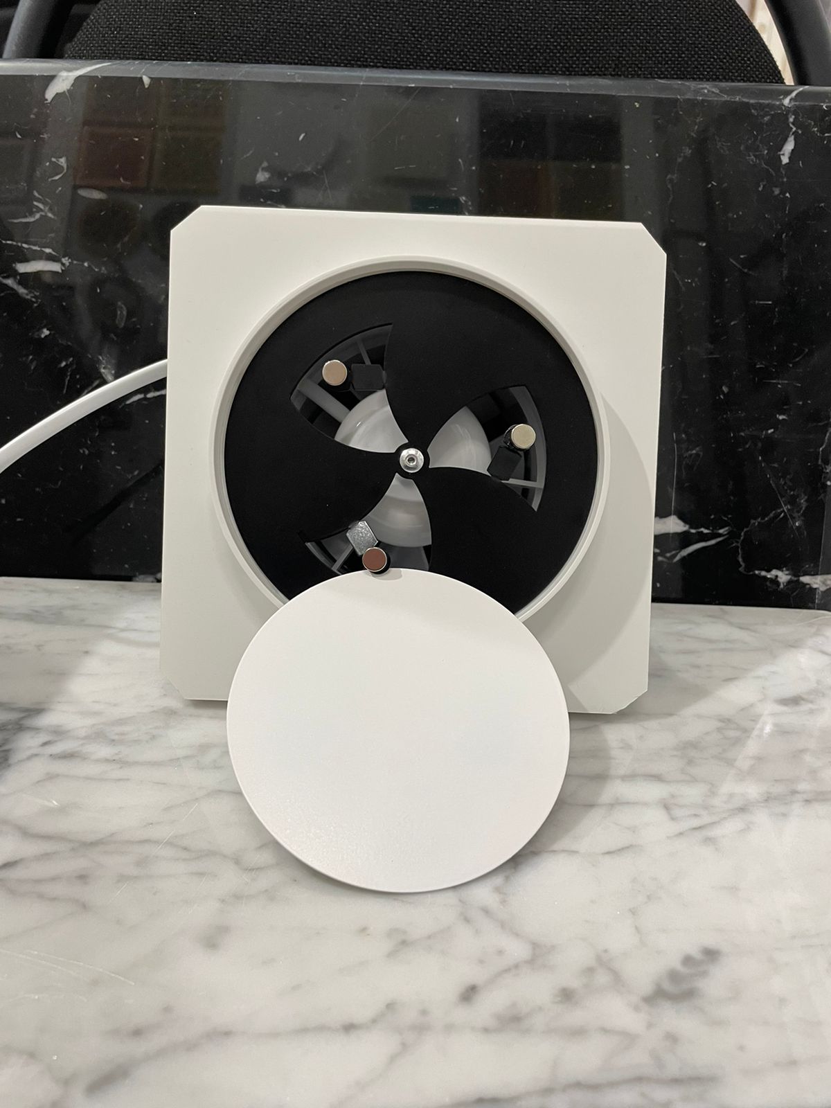 Так же диффузор состоит из металлической заслонкой, которой можно регулировать поток воздуха, либо полностью перекрыть его. К заслонке с помощью магнитов крепится декоративная круглая панелька, которую можно покрасить в цвет потолка. Так же по ободку диффузора имеется молярная сетка, для надёжной фиксации шпаклёвки. Наши диффузоры оснащены москитной сеточкой, которая препятствует попаданию насекомых в помещение.